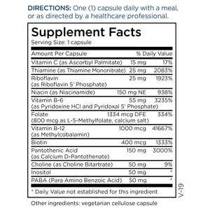 Our high potency B-Complex formula provides all eight essential B vitamins, plus choline, inositol, and PABA.