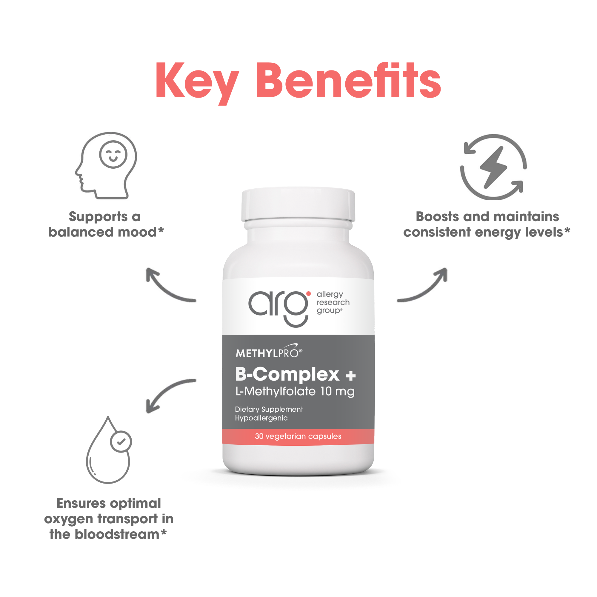 Features fully active, coenzyme forms of B vitamins for enhanced absorption and utilization.* Contains an additional 10 mg of L-5-Methylfolate for superior bioavailability and methylation support. Manufactured to rigorous quality and purity standards, free of common allergens and GMOs.